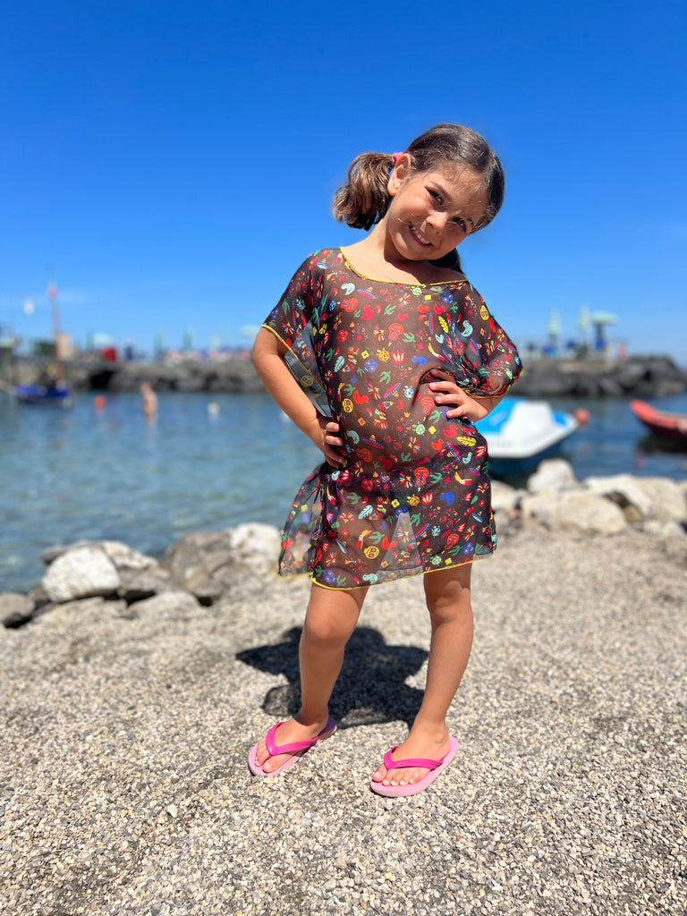 little girl's beach cover-up, coordinated with costumes, transparent and very light fabric.