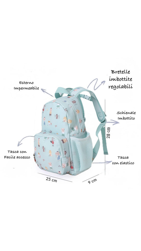 Misura perfetta perchè possano portarlo autonomamente sulle spalle, con dentro il cambio dell'asilo e il giocattolo preferito.